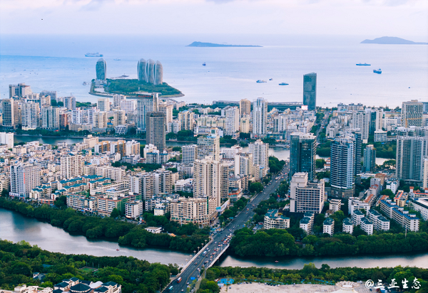 An aerial view of Sanya CBD from the top of Lingchunling. [Photo/Sanya municipal bureau of ecological environment]