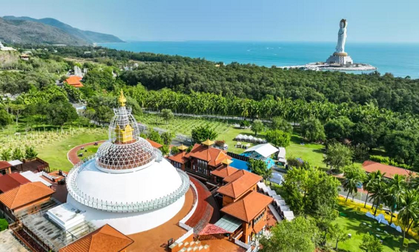 An aerial view of the Sanya Nanshan Intangible Cultural Heritage Museum. [Photo/WeChat account: sanyatour2013]