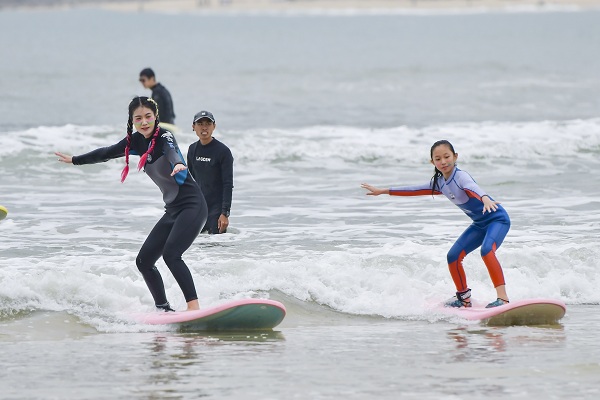 Tourists surf at Houhai Tourism Zone. [Photo/IC]
