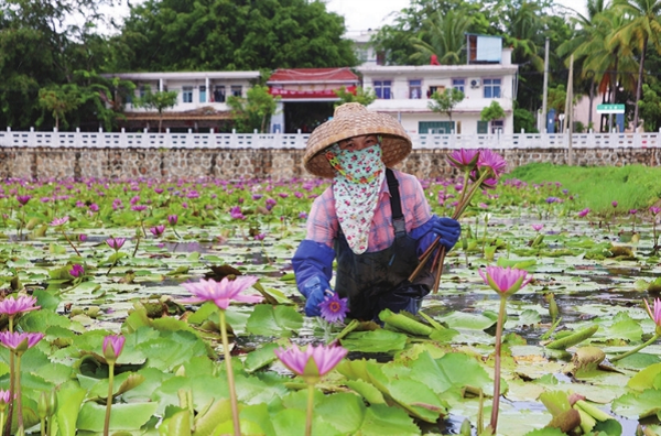 Baoqian village cultivates water lilies, achieving both ecological protection and economic benefits. [Photo/Sanya Daily]