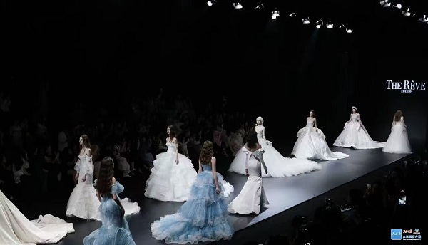 Models showcase elegant wedding dresses at the 2024 Sanya International Bridal Fashion Week. [Photo/Sanya Daily]