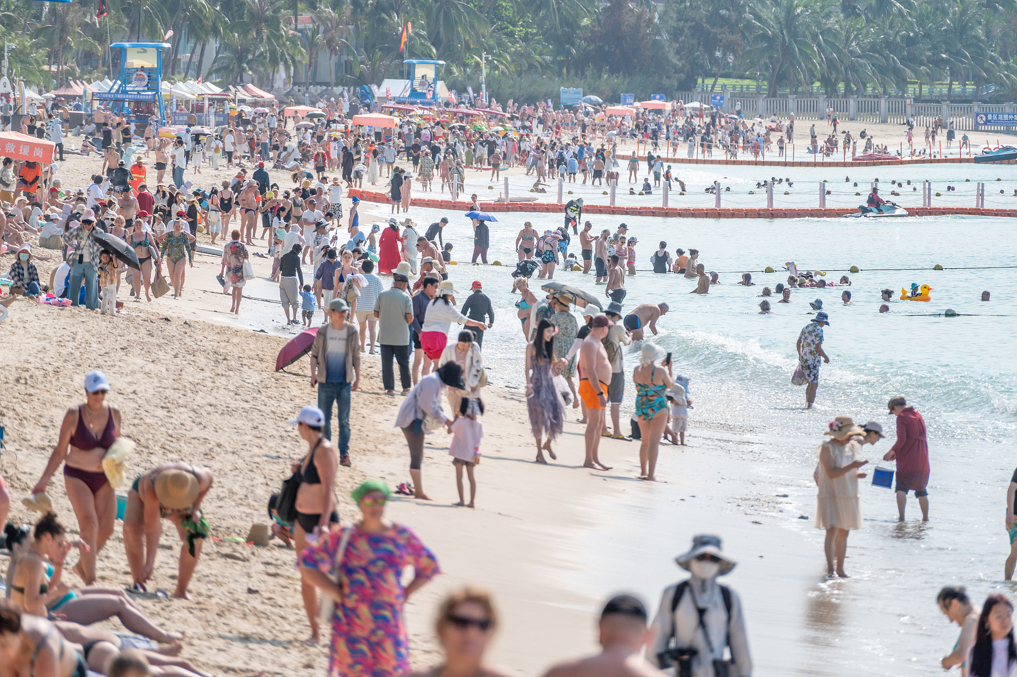 A sun-drenched beach in Sanya becomes a magnet for local and international tourists. [Photo/VCG]
