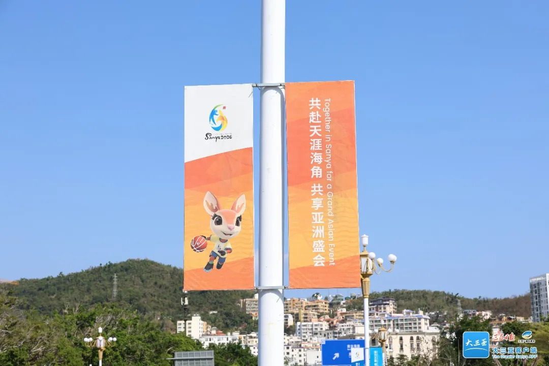 Colorful posters for the 6th Asian Beach Games Sanya 2026 line the sides of the road. [Photo/Sanya Daily]