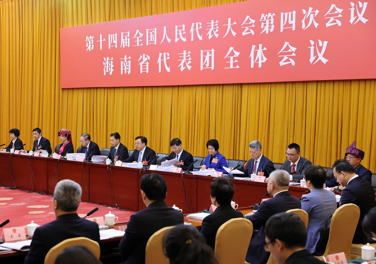 A group meeting of deputies from the delegation of Hainan province is held at the fourth session of the 14th National People's Congress in Beijing, March 6, 2026. [Photo provided to chinadailly.com.cn]