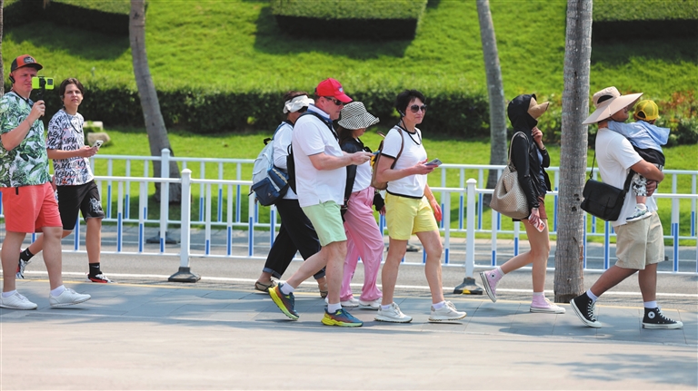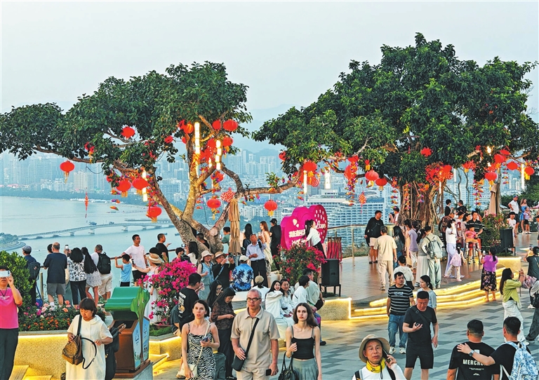 In Sanya's various tourist spots, the vibrant flowers and lush greenery make for a completely refreshing atmosphere, as many international visitors are captivated by the mix of tropical scenery and cultural charm.