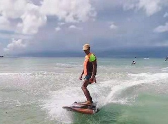 The two-day Sanya Surfing Open kicked off in Dadonghai Bay on Aug 28, and 67 athletes on 25 teams from across the country competed in the event.